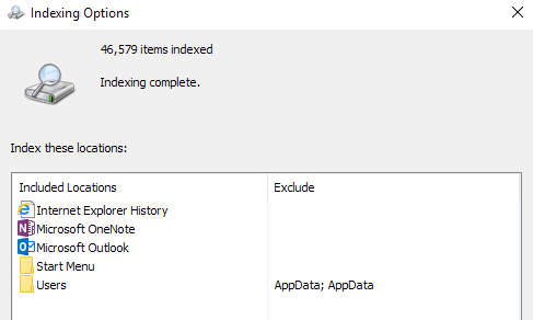 Just click on Start and then type in search. Click on the** Change on Windows searches** option to remove Outlook from the search index.