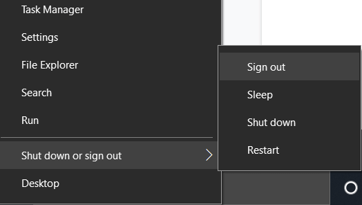 - Then click** Shutdown or sign out** and then click Sign out.