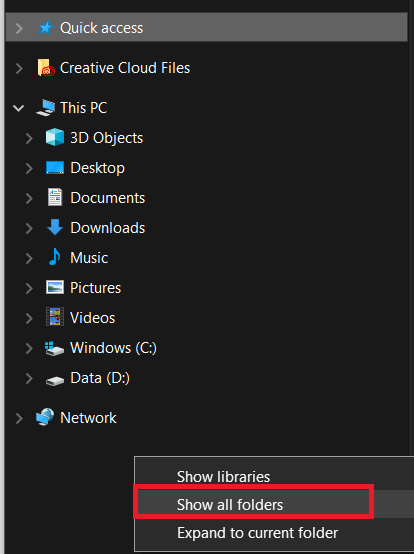 This solution will only be for those that spot Windows Explorer high CPU usage when they actually open Windows Explorer. If this is the case, open Windows Explorer and then on the left side panel, right-click.