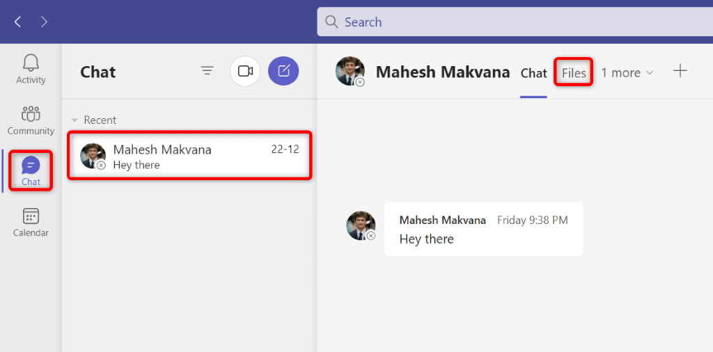 - Select Files at the top of the chat screen.