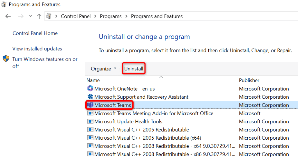 - Find Microsoft Teams on the list, select the app, and choose Uninstall at the top.
