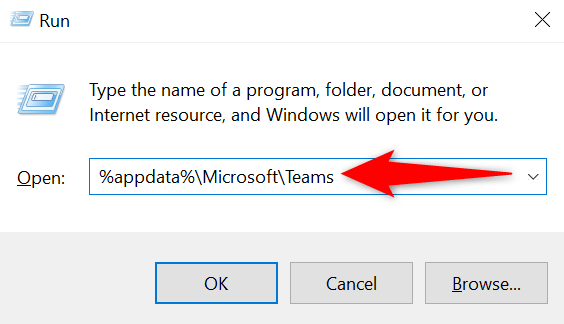 - Type the following path in Run and press Enter: %appdata%\Microsoft\Teams