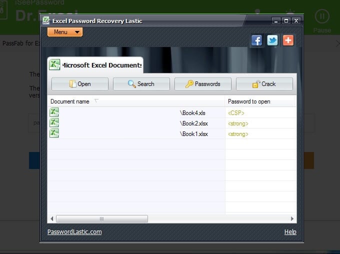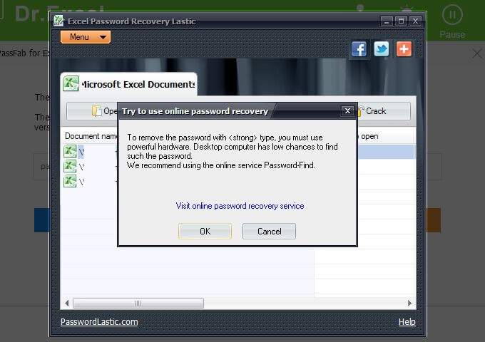 The password for the first file in the list is password. It was set this way to keep the testing simple. However, even with an easy password, and more importantly, weak encryption (because of the version of Excel software), the Excel Password Recovery Lastic tool still recommended that another option be tried. It recommended a visit to Password-Find, which you can find more details about below.