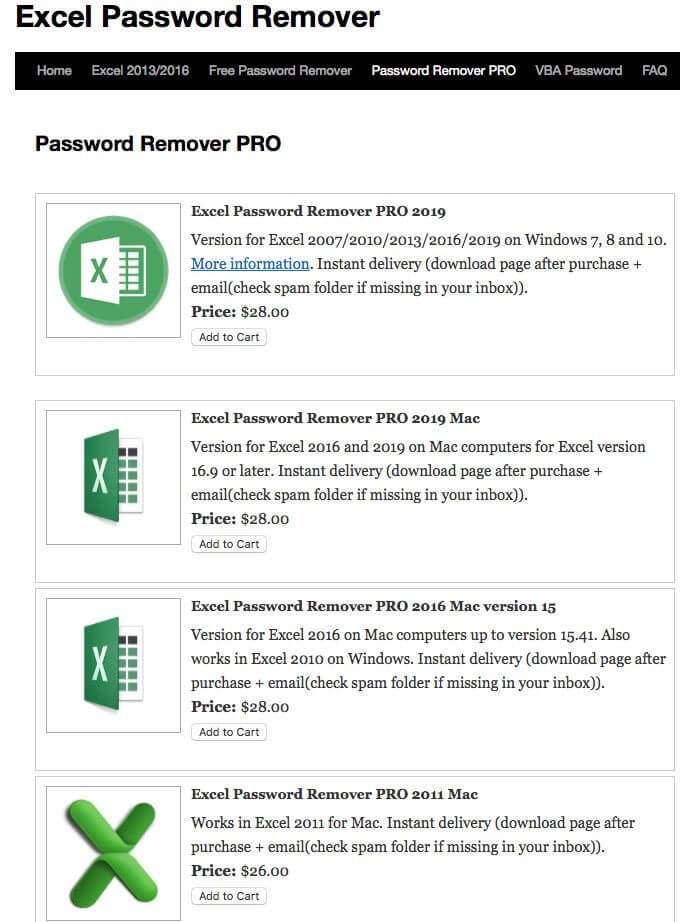 Interestingly, software options that will work for those items (i.e. Excel 2016, open password, Mac, etc.) will also work for the older Excel programs.