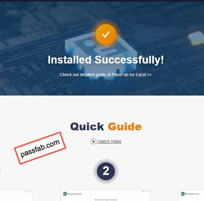 If you turn away or are not paying attention, your default browser may open with a confirmation that the software was successfully installed. The site is passfab.com, the same site that is the developer of the software and you are taken directly to the Quick Guide for help.