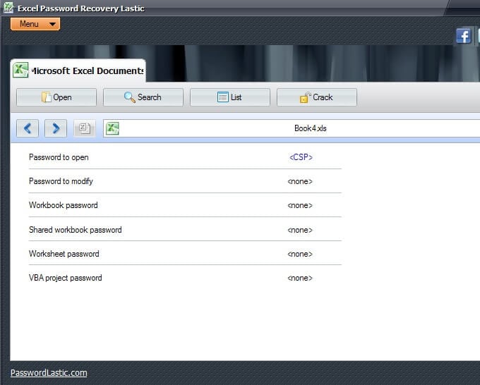 Now, here is where this software may be helpful. If you have an Excel spreadsheet and you know it is password protected but you are not sure to what extent, you could let Excel Password Recovery Lastic find the file (when it does its automatic scanning when you open the program) and then tell you what type of protection the file has (see above image).