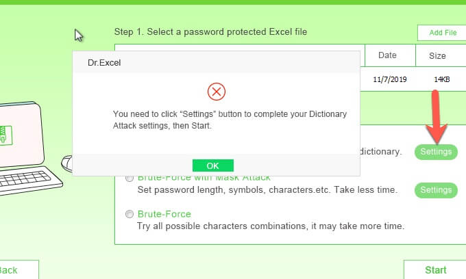 The Settings on this screen allows you to upload a customized dictionary. So if you have an idea of what the password is, you may want to list these possibilities in your customized dictionary.