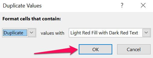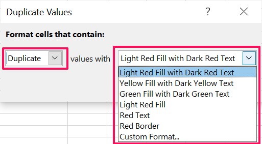 - Make sure the first drop-down box reads “Duplicate.” You can also select your preferred highlight color in the second drop-down menu.