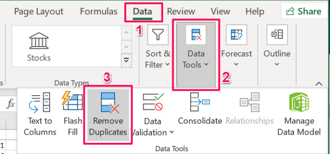 - Go to the Data tab and click the Remove Duplicates icon in the “Data Tools” section.