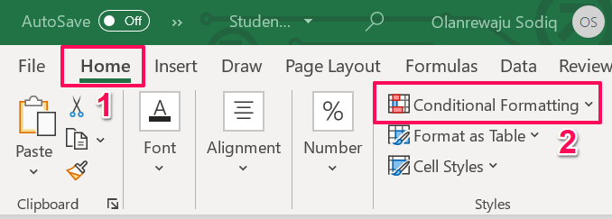 - Go to the **Home** tab and select **Conditional Formatting**.