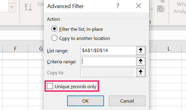 We should mention that you cannot remove duplicate rows or values from a worksheet containing outlined or grouped data. So if you grouped the rows and columns in your Excel worksheet, perhaps into Totals and Subtotals, you’ll have to ungroup the data before you can check for duplicates. Refer to this official documentation from Microsoft to learn more about removing duplicates in Excel and filtering unique values.