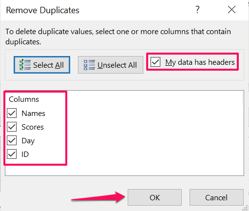 So, if your Excel worksheet or table has a header, it’s best to use the “Remove Duplicates” tool to eliminate duplicate rows.