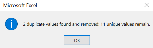 If the table or worksheet contains multiple rows with similar information or values, Excel will remove all but the first occurrence of the duplicates.