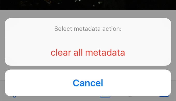 - Launch the app, select your photos, tap on the settings icon at the bottom-left corner, and select clear all metadata.