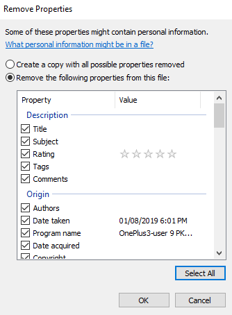 Depending on the option you chose above, you’ll have either all or select data removed from your photos on your PC.