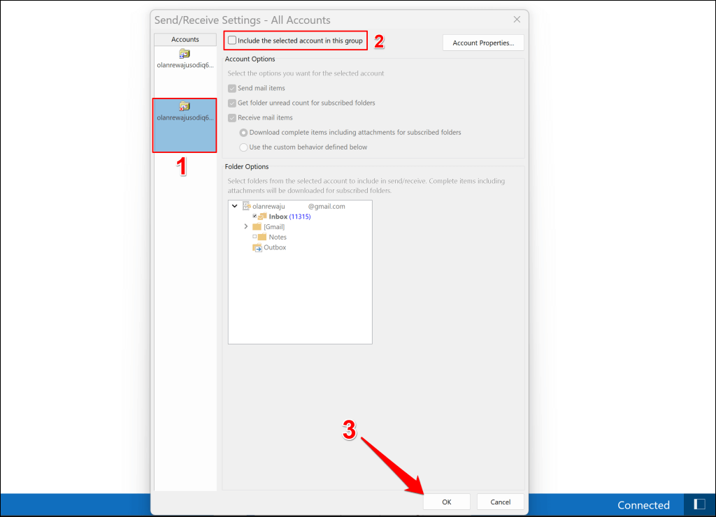 Follow the steps below to turn off an account in Outlook on your Windows device.