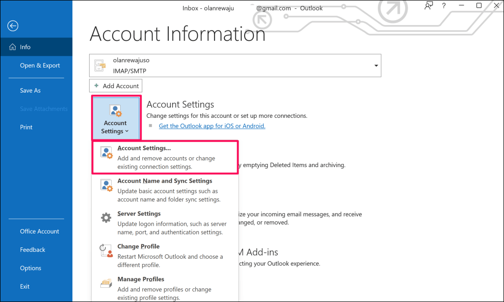 Restart or update the Outlook application on your device if you run into roadblocks deleting an email account. Reboot your device if the issue persists.