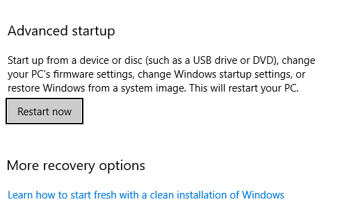 There are several methods you can use to enter Safe Mode on Windows 10. The easiest option is to type advanced startup in your Start Menu search bar and select the Best Match. Now, under **Advanced Start-up, **select Restart Now.