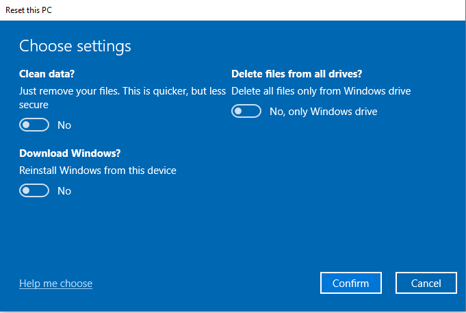 Confirm your options, then proceed to factory reset your machine.