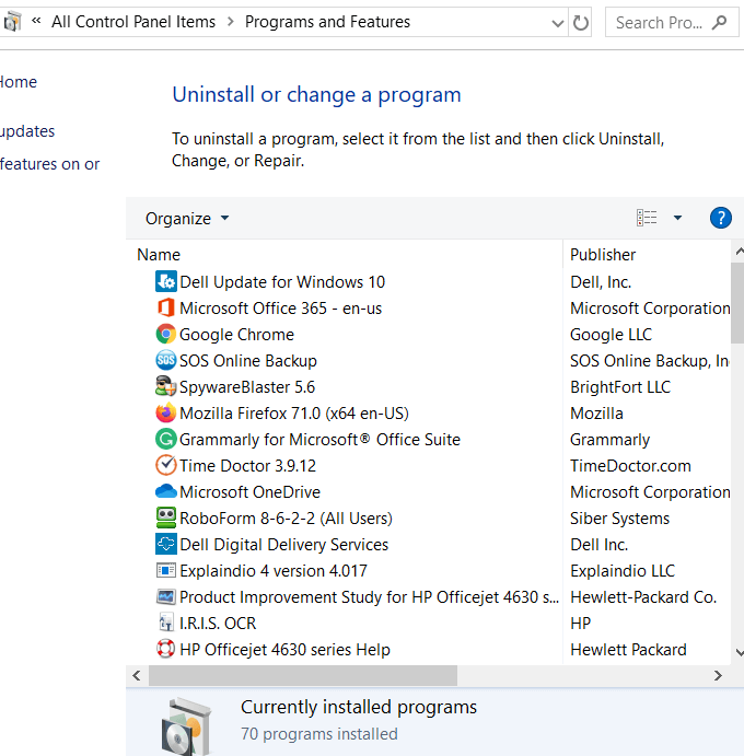 - Click on **Programs and Features **to see a list of every program and app installed on your computer.