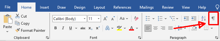 - * In the ribbon, go to Paragraph and select Show/Hide ¶ to show formatting symbols.