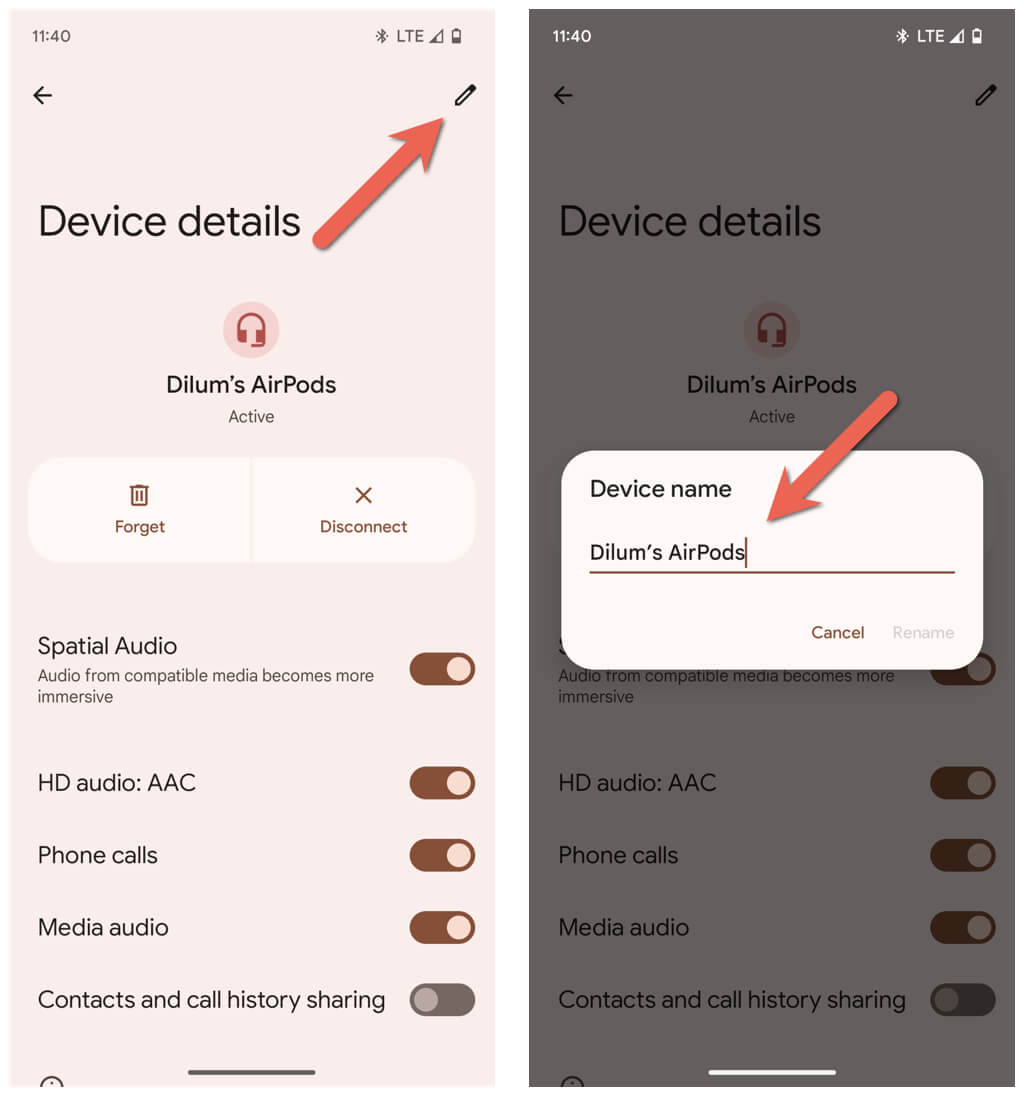 Note: Bluetooth name changes are local to the paired desktop or mobile and don’t transfer between devices. Exceptions include wireless peripherals like Apple’s AirPods.