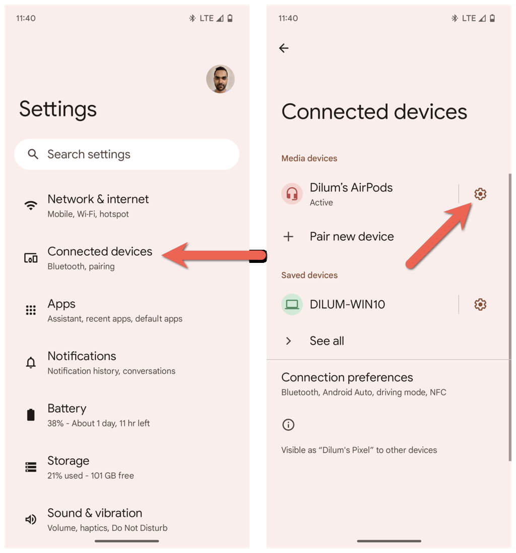 - Select the Gear icon next to the Bluetooth gadget you want to rename.