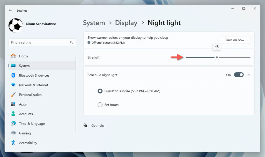 Night Light is a handy feature that decreases the blue light from your display to reduce eye strain and improve sleep. However, setting the strength of the filter to a value that’s too high or too low can diminish its effect or make colors look washed out. To reset Night Light: