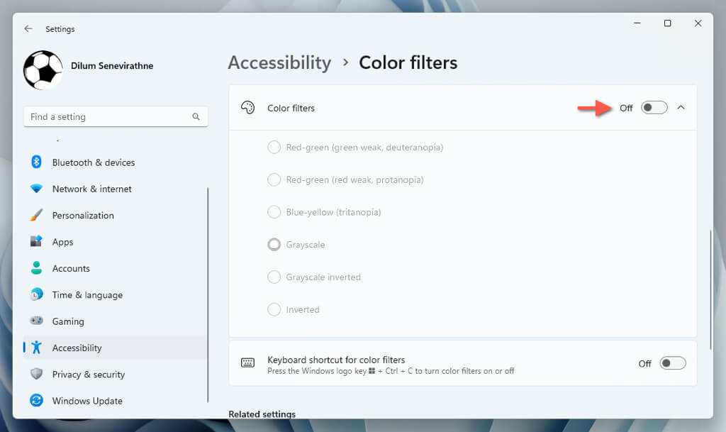 Windows has loads of color filters that can radically transform the appearance of the user interface. If you’d like to disable them: