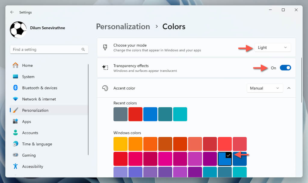 Color effects in Windows, such as dark mode, accents, and borders, significantly impact the user interface’s general look and feel. To undo any changes to the color settings: