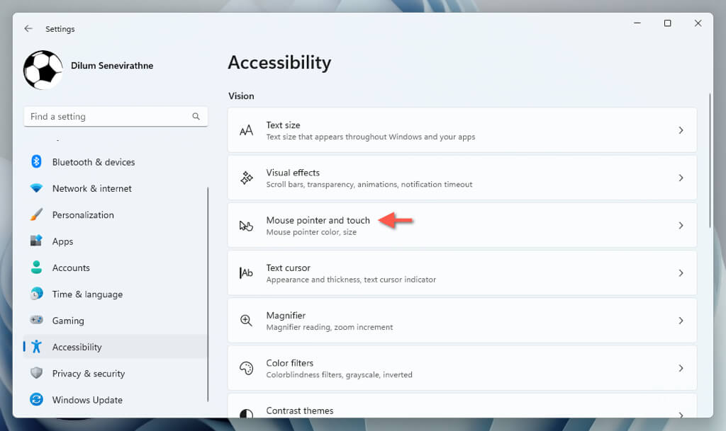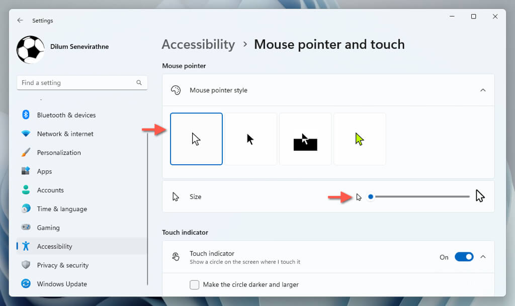 - Open the Settings app and go to Accessibility > Mouse pointer and touch.