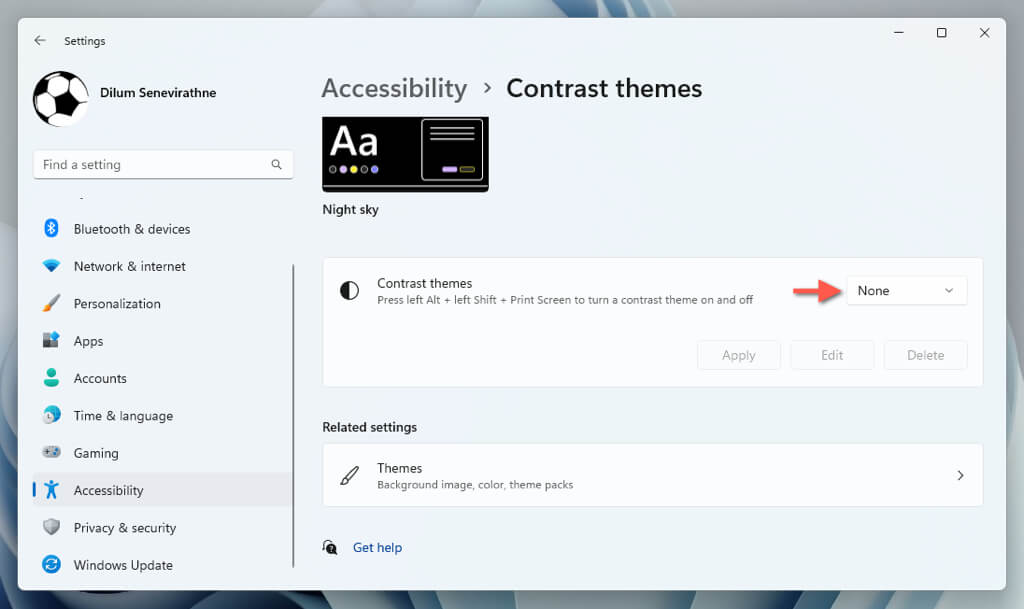 Contrast themes in Windows use distinct colors to make text and apps more accessible. If you do not like how they look and prefer the default theme instead: