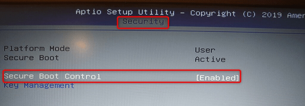 - Open the Security tab in BIOS, select the Secure Boot option, and turn on the Secure Boot Control option.