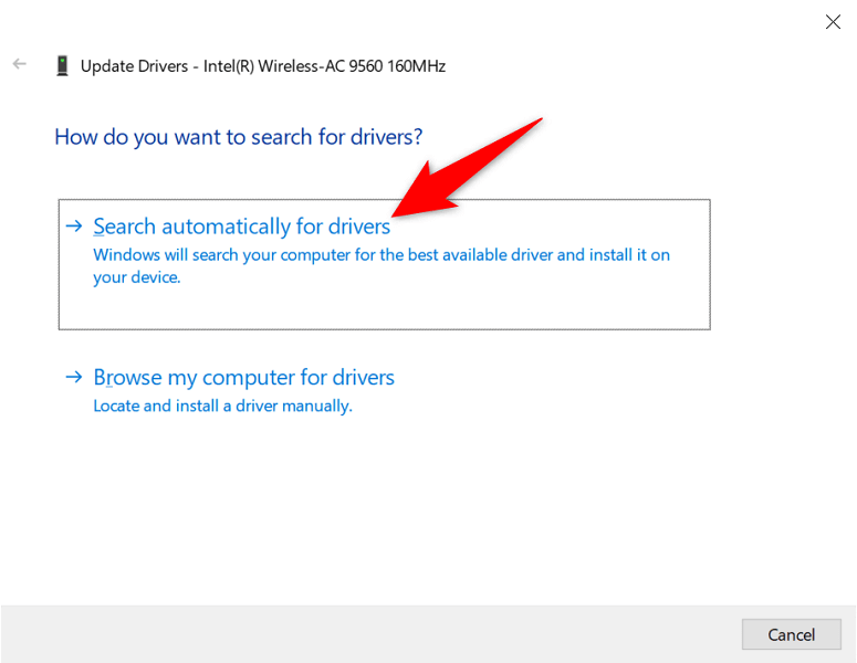 - Select Search automatically for drivers.
