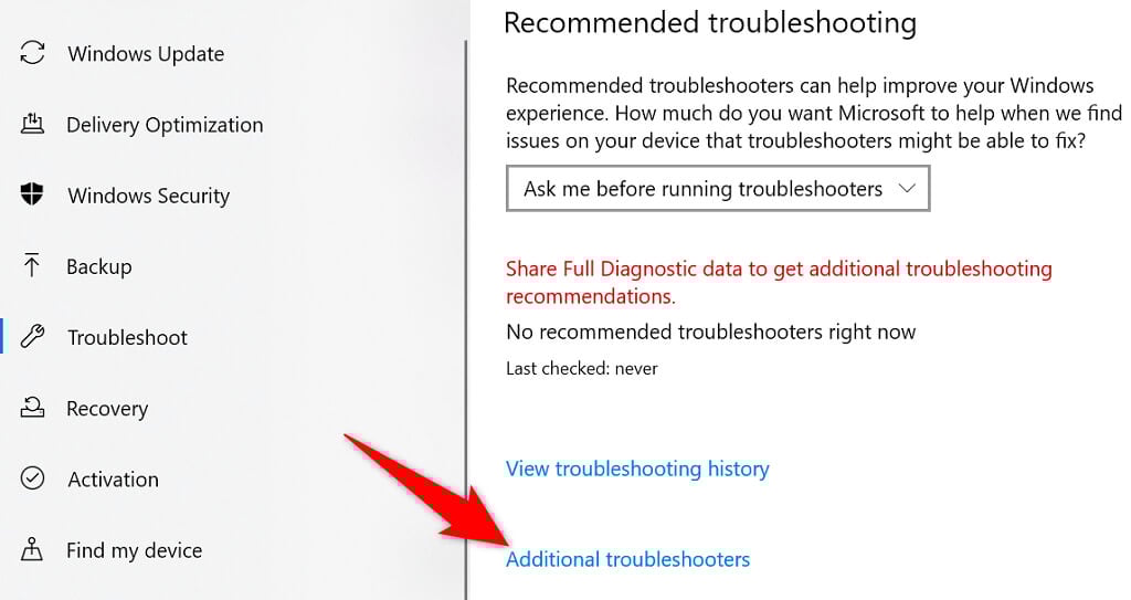 - Select Additional troubleshooters on the right.
