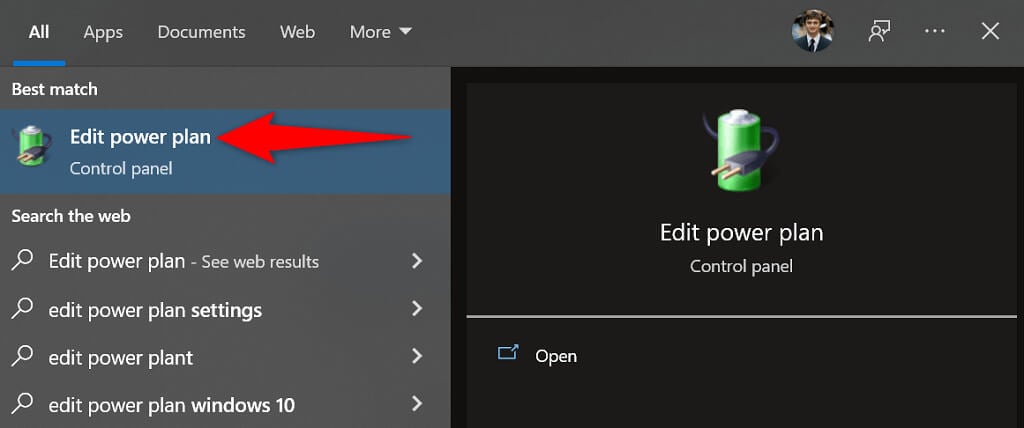 - Open the Start menu, search for Edit power plan, and choose that item in the search results.