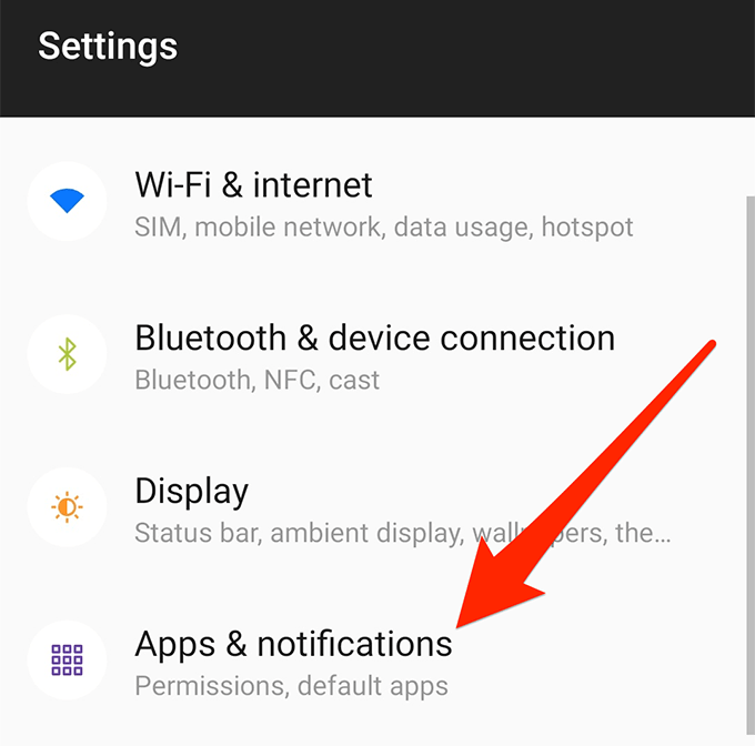 - Tap on the Apps & notifications option.