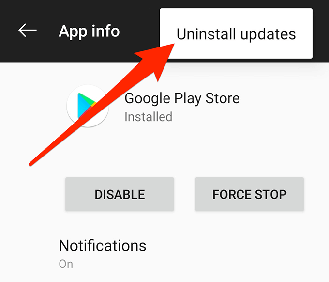 If the Play Store download pending issue has come up only after a recent Play Store update, the update might be the culprit here. Fortunately, your device allows you to roll back these updates and that should fix the issue for you.