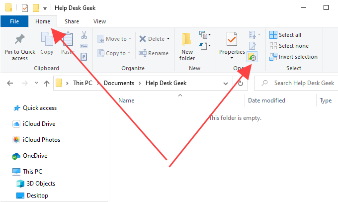 Start by connecting the external drive that contains the File History backup. Then, open File Explorer, navigate to the location of a deleted file or folder and select the History icon under the Home tab.