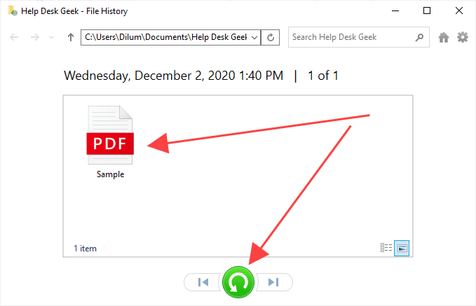 Once you’ve located a deleted item, select it and use the green-colored Restore icon to recover it. Rinse and repeat for any other files or folders that you want to get back.