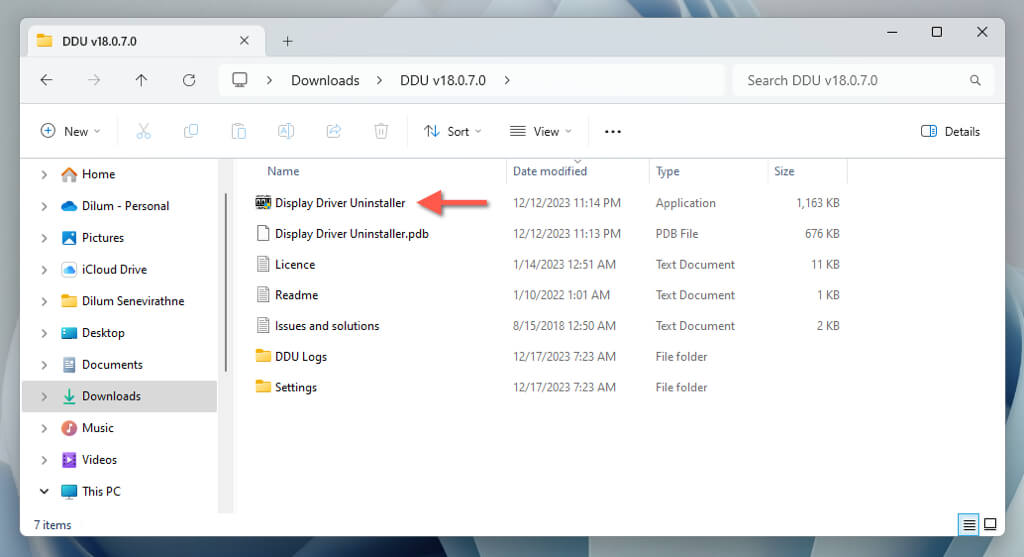 - Visit your computer’s Downloads folder, extract DDU, and double-click Display Driver Uninstaller.