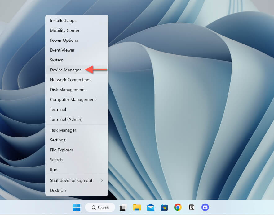 - * Right-click the Start button and open Device Manager.