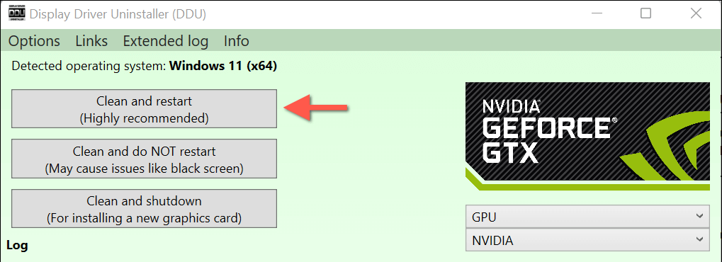 - Wait until DDU removes the NVIDIA GPU drivers. Windows 11 should automatically reboot and exit Safe Mode after that.