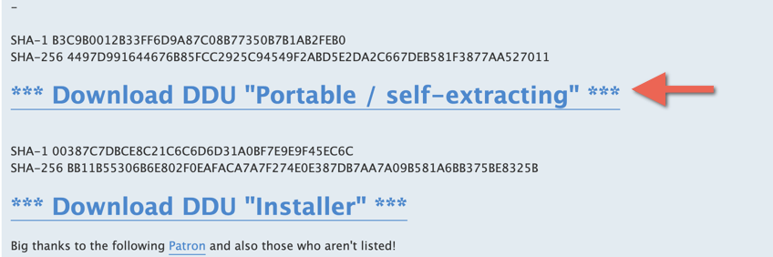 - Visit Wagnarsoft and download the portable/self-extracting version of DDU.