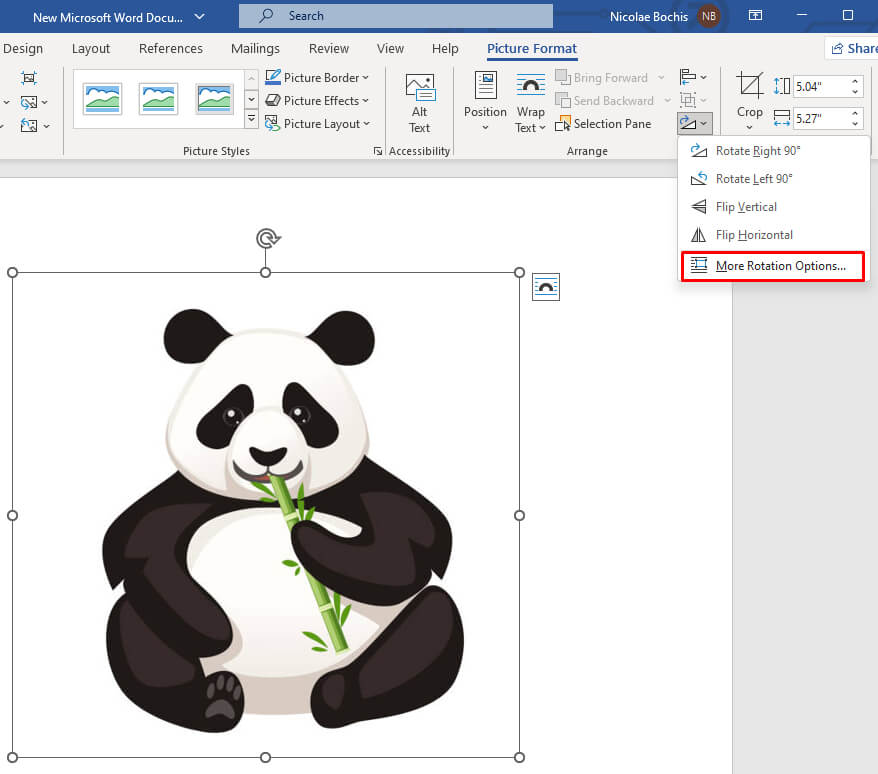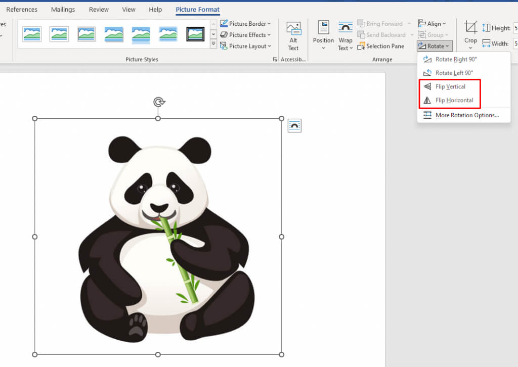 Remember Microsoft Word lets you flip an image horizontally or vertically. So if you don’t need a special position for the image, this option is better than rotating. This can also be a great formatting choice for your Word document layout.