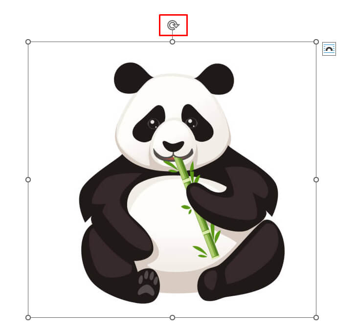 - You’ll notice a rotation arrow (rotation handle) at the top of the image. Depending on the version of your Microsoft Word, you might see a green dot instead of an arrow.