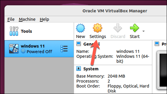 - At this point, your virtual machine will now be listed in the main VirtualBox interface, but you’ll also need to make sure that the installation media for your operating system is accessible to the virtual machine in the Controller: IDE or Controller: SATA settings as a virtual disk drive. For instance, if you’ve downloaded a Linux distro, you’ll need to ensure the image file is selected so that the installation can begin when the VM first runs. * To do this, select your virtual machine and press Settings.