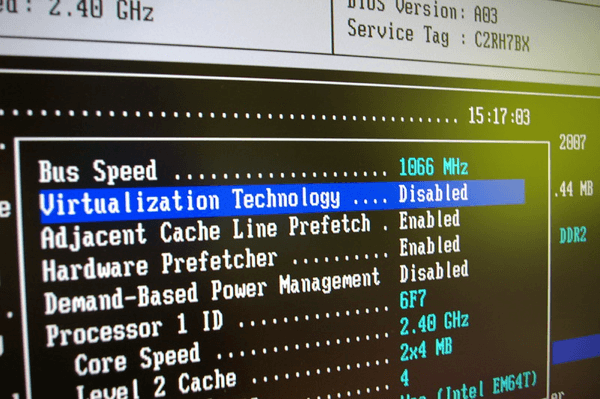 - In the BIOS or UEFI settings, search for the virtualization option. This option might be located under the Advanced, Configuration, or Security sections. It may also be called Intel Virtualization Technology, AMD-V or something similar, depending on your processor’s manufacturer.