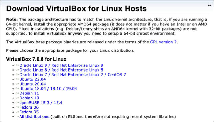 - If you’re running a Linux distribution that isn’t Ubuntu or Debian-based, download the latest version of Virtualbox from the Virtualbox website and install the file using your distribution’s package manager.