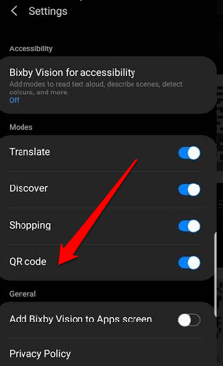 - To do this, take a picture or screenshot of the QR Code, open it in the Gallery app and then tap the Bixby Vision****icon at the bottom of your screen.